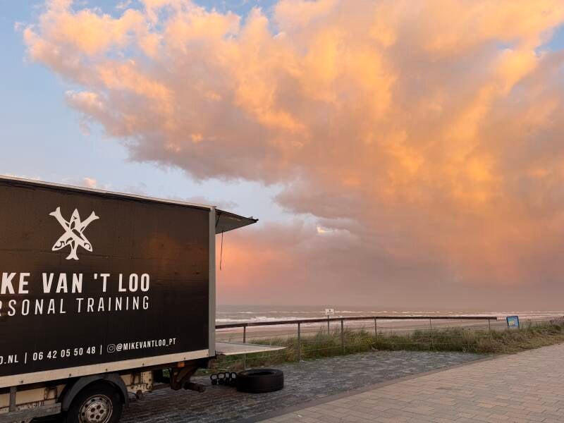 In ons kustdorp gaan we, al sinds we hier wonen, twee keer per week trainen. Fitness en kickboksen, met zicht op zee. Dat doen we in de rijdende sportschool van Mike. Een resultaat van coronapandemie, toen binnen trainen op een sportschool echt niet meer kon. Op de woensdagen is hij om 6 uur ‘s ochtends paraat op de boulevard, op zaterdag mogen we uitslapen, want dan trainen we pas om 8 uur.