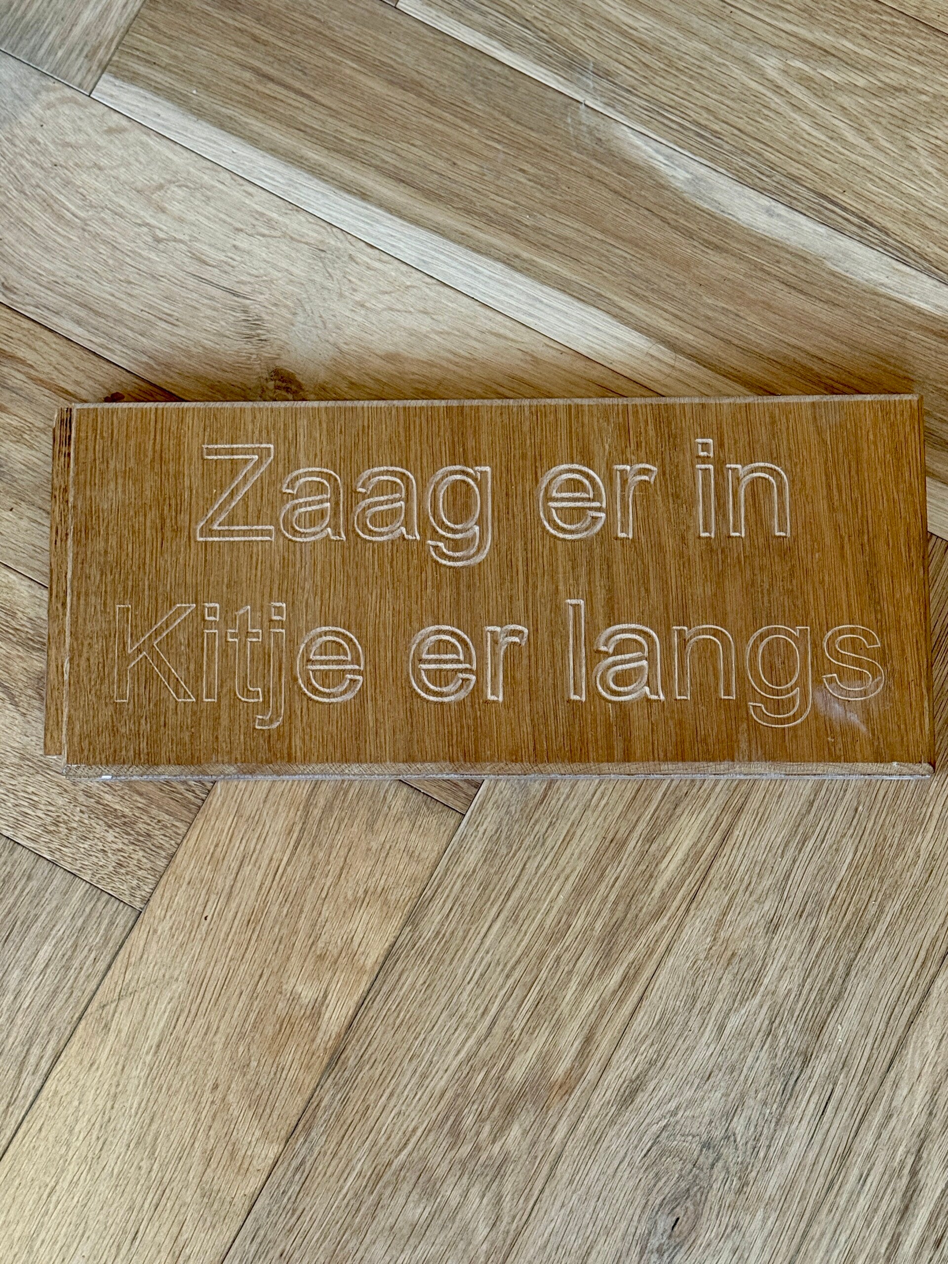 Velen die hierbij betrokken zijn geweest of nog zijn, waren bij het afscheid van Andre. Er zijn mooie gesprekken gevoerd en prachtige cadeaus gegeven. Maar een van de mooiste cadeaus was misschien wel het vloerdeel waarop de tekst in gegraveerd is: ‘zaag erin, kitje er langs’. Een uitspraak van Andre die blijkbaar een gevleugeld gezegde is geworden, en die staat voor flexibiliteit, oplossingsgericht, innovatief en vooral: creatief.
